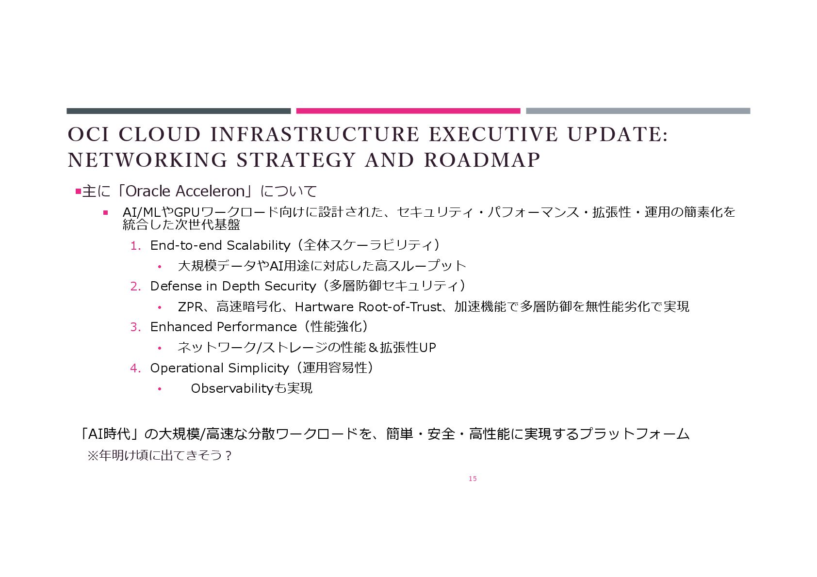 OCI CLOUD INFRASTRUCTURE EXECUTIVE UPDATE: NETWORKING STRATEGY AND ROADMAP ¡主に「Oracle