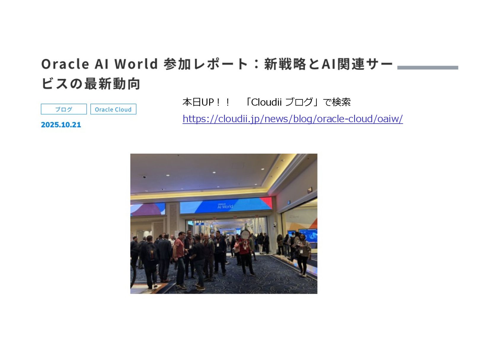 本⽇UP︕︕ 「Cloudii ブログ」で検索 https://cloudii.jp/news/blog/oracle-cloud/oaiw/