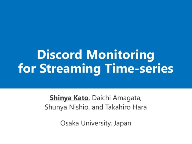 2 − 9, 1.5 9, 1.5 3 − 8, 2.3 8, 2.3 4 − 5, 1.5 − 5 − 8, 1.8 − 6 2, 3.0 9, 2.4 9, 2.4 7 3, 2.2 9, 1.2 9, 1.2 8 − 9, 4.2 − 9 7, 1.2 − 7, 1.2 ID NNolder NNyounger NN 1 − 5, 1.0 5, 1.0 2 − 7, 2.7 7, 2.7 3 − 8, 2.3 8, 2.3 4 1, 1.1 5, 1.5 1, 1.1 5 1, 1.0 8, 1.8 1, 1.0 6 2, 3.0 7, 3.1 2, 3.0 7 3, 2.6 8, 3.2 3, 2.6 8 1, 1.4 − 1, 1.4 9 Proposed algorithm SDM (Streaming Discord Monitoring) ⚫NNolder : NN to subsequences before it is generated ⚫NNyounger : NN to subsequences after it is generated 10 We can always maintain NNyounger accurately, and identify subsequences that can be discord. 𝑠2 𝑠1 𝑠3 𝑠4 𝑠5 𝑠6 𝑠7 𝑠8 𝑠9 not discord * * * *