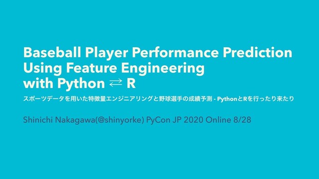 PyCon JP 2020 8/28 「スポーツデータを用いた特徴量エンジニアリングと野球選手の成績予測 - PythonとRを行ったり来たり」登壇資料