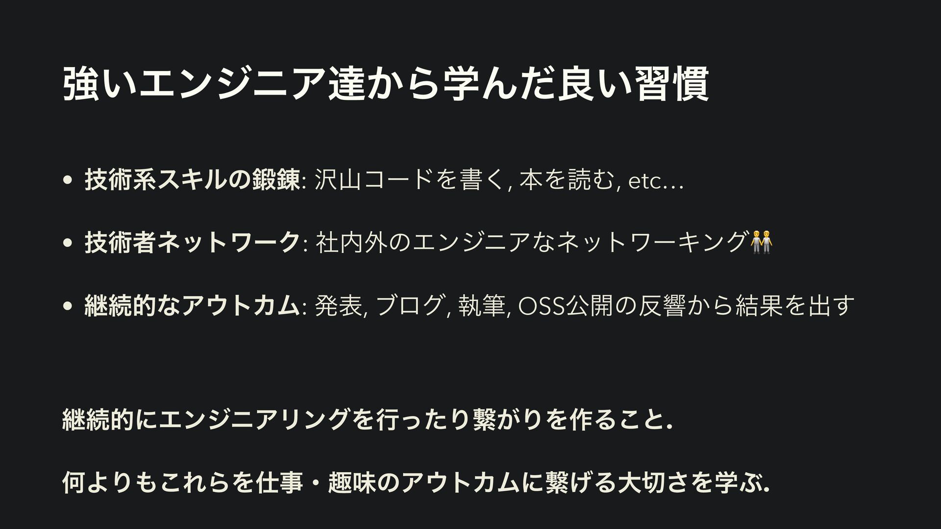 ڧ͍ΤϯδχΞୡ͔ΒֶΜͩྑ͍श׳ • ٕज़ܥεΩϧͷ࿉: ࢁίʔυΛॻ͘, ຊΛಡΉ, etc… • ٕज़ऀωοτϫʔΫ: ࣾ֎ͷΤϯδχΞͳωοτϫʔΩϯά🧑🤝🧑 •