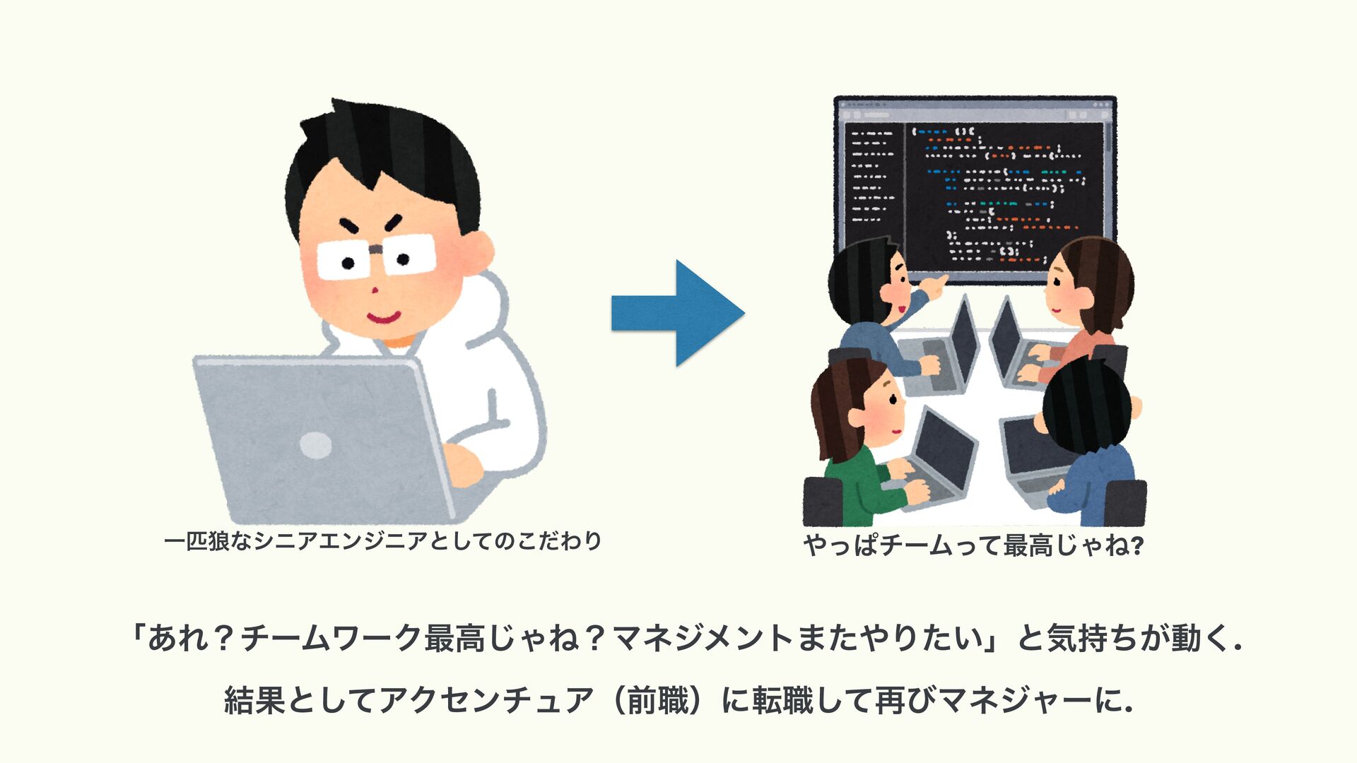 ΞΫηϯνϡΞ࣌ ʢ42ࡀ-45ࡀʣ • ʢৄࡉݴ͑·ͤΜ͕ʣΫϥυ/DevOpsͷεϖγϟϦε τͳSREͱͯ͠σϦόϦʔʹैࣄ. • Ϛωδϟʔͱͯ͠ͷೖࣾͰ͋ΔͨΊɺϐʔϓϧϚωδϝϯτ શൠʹܞΘͬͨʢՃ͑ͯҭɾ࠾༻ɾٕज़ใʣ. • աڈʹEMͱͯ͠͏·͘ग़དྷͳ͔ͬͨʮෛͷܦݧʯ্͕ख͘