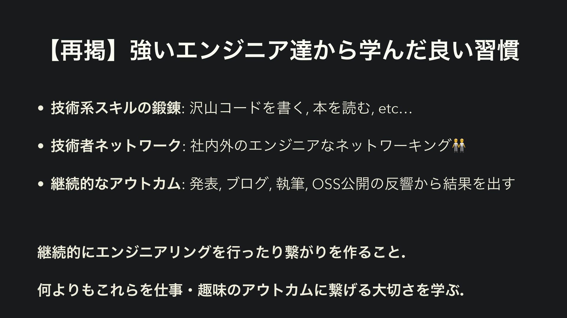 ʲ࠶ܝʳڧ͍ΤϯδχΞୡ͔ΒֶΜͩྑ͍श׳ • ٕज़ܥεΩϧͷ࿉: ࢁίʔυΛॻ͘, ຊΛಡΉ, etc… • ٕज़ऀωοτϫʔΫ: ࣾ֎ͷΤϯδχΞͳωοτϫʔΩϯά🧑🤝🧑 •