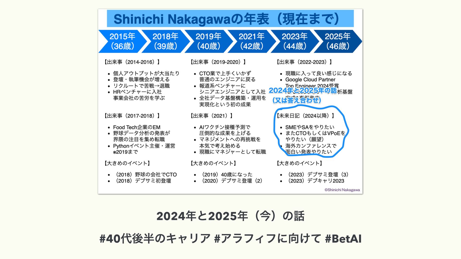 2024ͱ2025ʢࠓʣͷ #40ޙͷΩϟϦΞ #ΞϥϑΟϑʹ͚ͯ #BetAI ©Shinichi Nakagawa