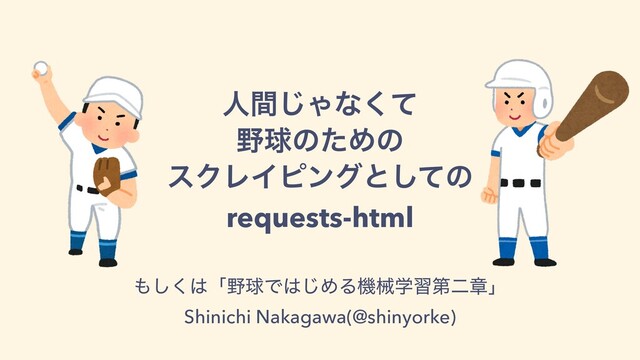 ਓؒ͡Όͳͯ͘ ٿͷͨΊͷ εΫϨΠϐϯάͱͯ͠ͷ requests-html ͘͠ʮٿͰ͡ΊΔػցֶशୈೋষʯ Shinichi Nakagawa(@shinyorke)