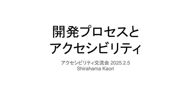 開発プロセスと アクセシビリティ アクセシビリティ交流会 2025.2.5 Shirahama Kaori