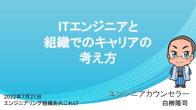 2022年7月21日 (株)ラクス様主催の エンジニアリング組織あれこれLT でLT登壇したときの資料です