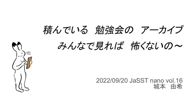 積んでいる 勉強会の アーカイブ みんなで見れば 怖くないの~ 2022/09/20 JaSST nano vol.16 城本 由希