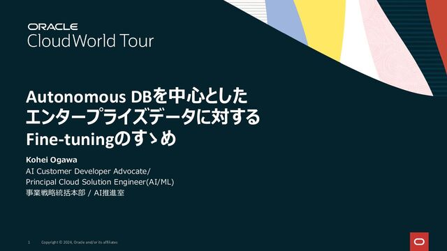こちらはOracleの1st paryイベントであるOracle Cloud World Tour Tokyoで登壇発表させていただいた内容になります。イベントの詳細はこちら:https://www.oracle.com/jp/cloudworld-tour/