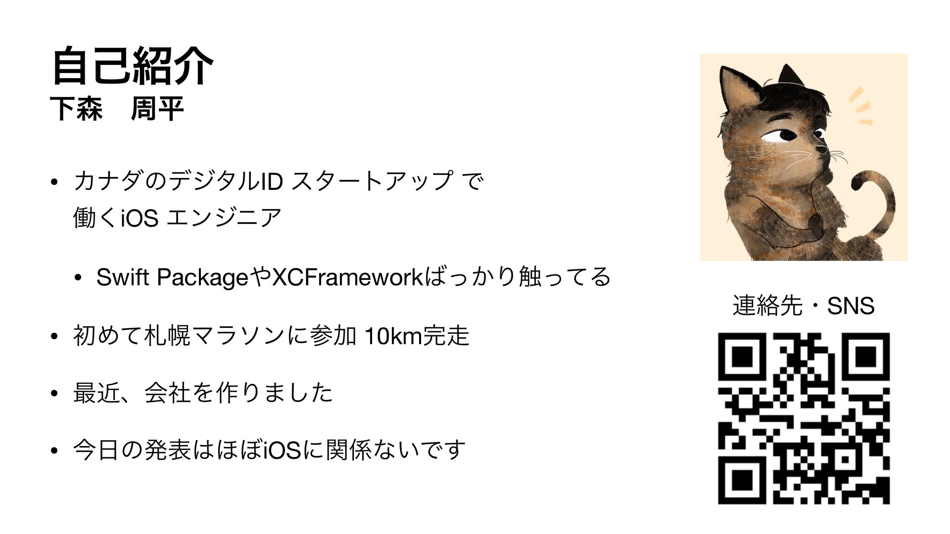 PackageXCFramework͔ͬΓ৮ͬͯΔ • ॳΊͯࡳຈϚϥιϯʹࢀՃ 10km • ࠷ۙɺձࣾΛ࡞Γ·ͨ͠ • ࠓͷൃද΄΅iOSʹؔͳ͍Ͱ͢ ࿈བྷઌɾSNS