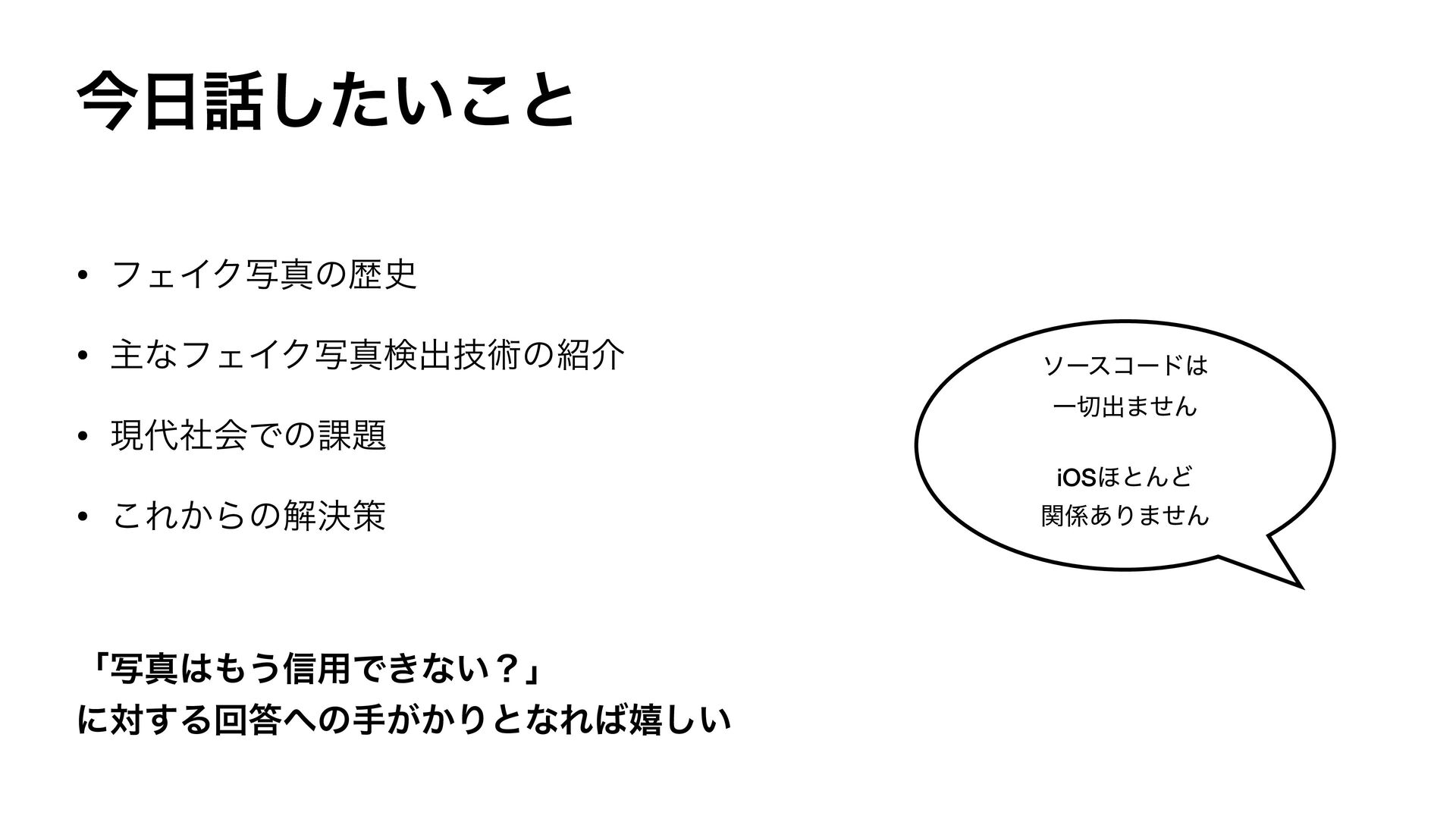 ࠓ͍ͨ͜͠ͱ • ϑΣΠΫࣸਅͷྺ࢙ • ओͳϑΣΠΫࣸਅݕग़ٕज़ͷհ • ݱࣾձͰͷ՝ • ͜Ε͔Βͷղܾࡦ ʮࣸਅ͏৴༻Ͱ͖ͳ͍ʁʯ