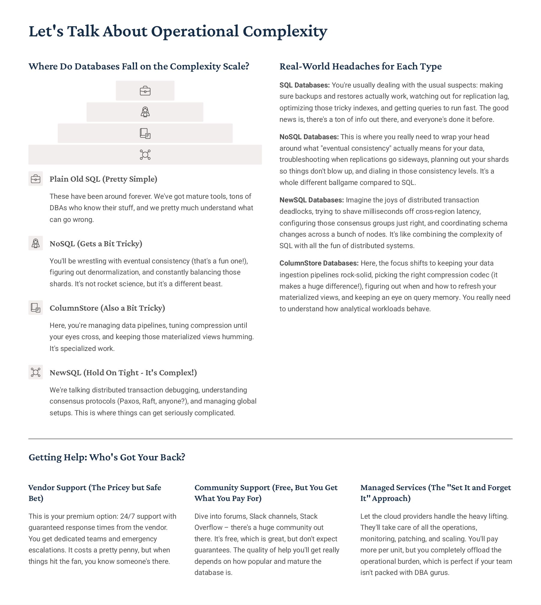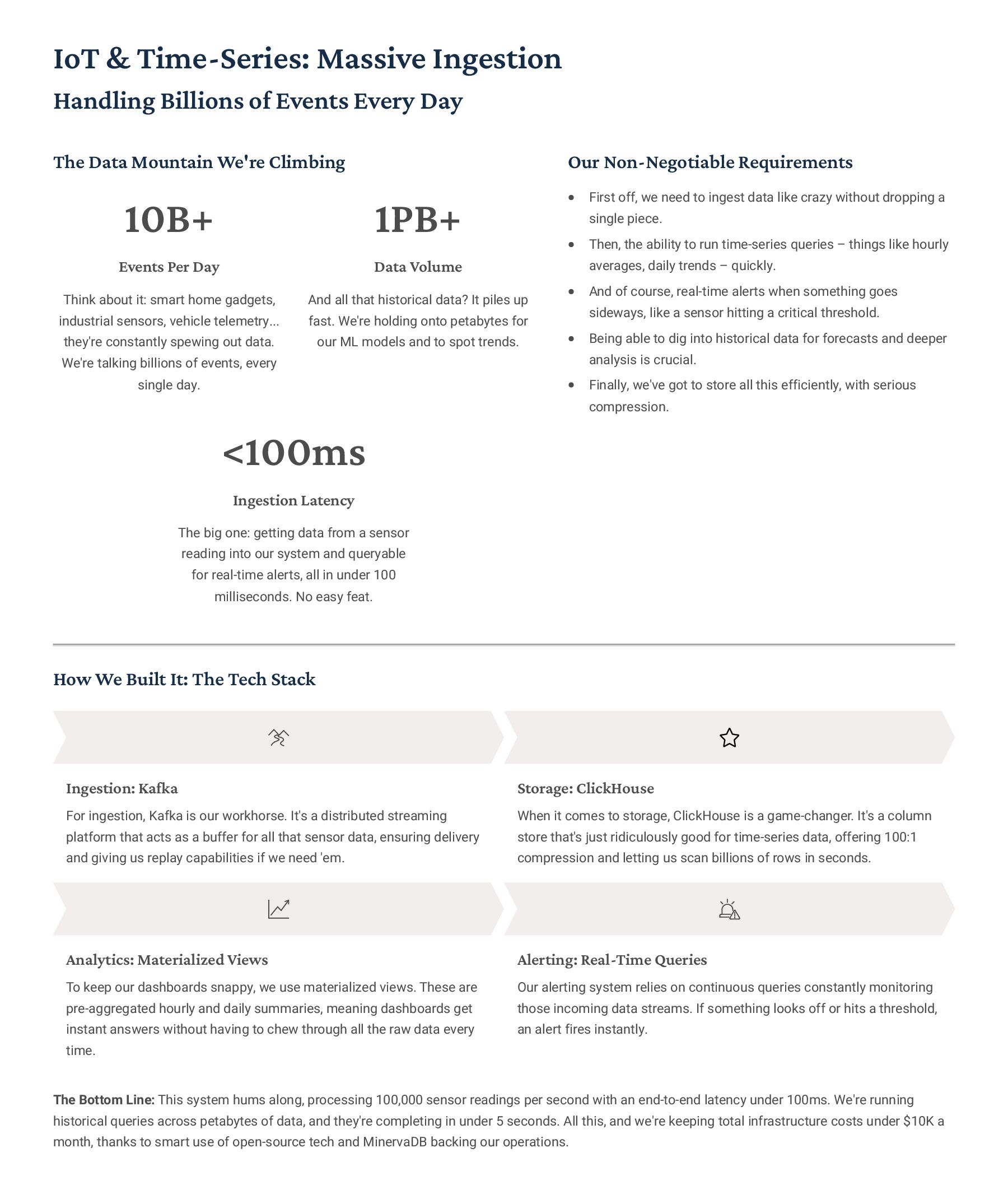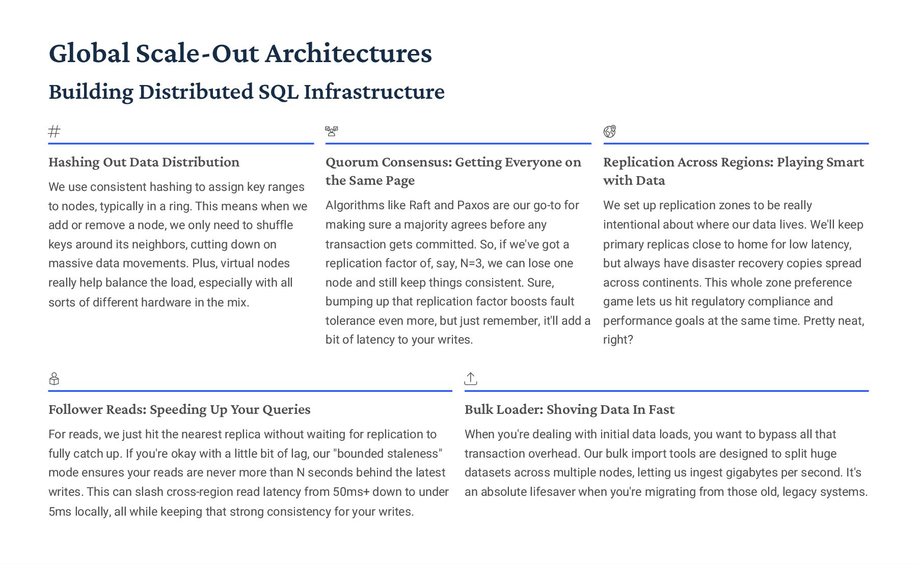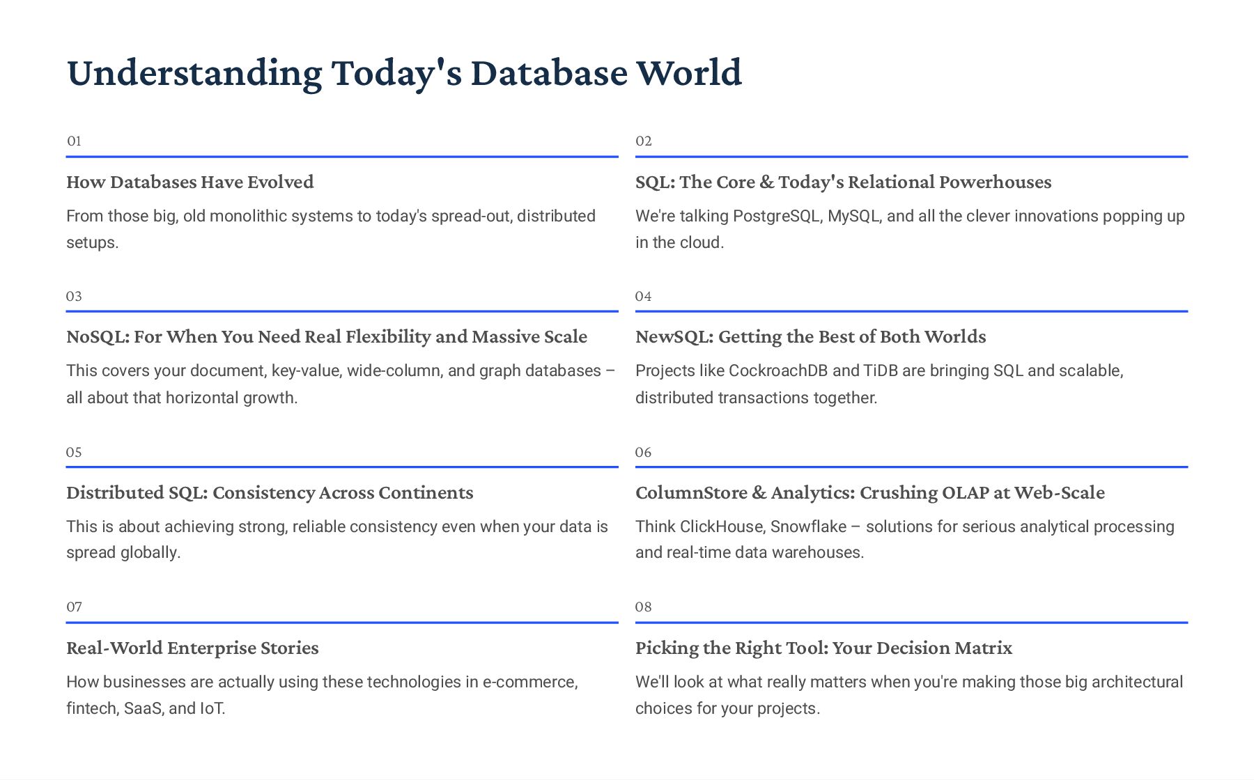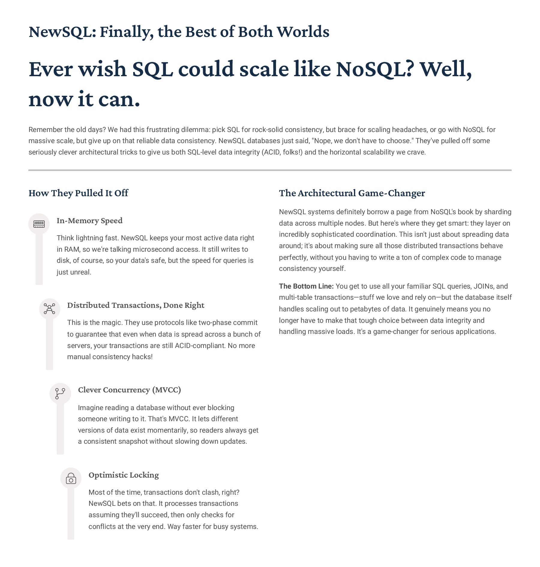 for Blazing-Fast Analytics So, How Do Column Stores Actually Keep Data? Alright, picture this: your standard row stores just grab a whole record4 like [id:1, name:"Alice", age:30, city:"NYC"]4and save it all together. But column stores? They flip that on its head. They group data by the attribute. So instead, you'd see something like id:[1,2], then name: ["Alice","Bob"], then age:[30,25], and finally city:["NYC","LA"], all as separate chunks. It9s a totally different way to organize things! Why This Design Kicks Butt for Analytics Only Read What You Need: Imagine you're just trying to figure out the age distribution. The system literally only bothers with the 'age' column, leaving all the other irrelevant data untouched. That's a huge time-saver. CPU Power Unleashed: Our CPUs actually love working with batches of the same kind of data. Column stores let them do 'vectorized processing,' meaning they can chew through arrays of identical values super-efficiently, often using fancy SIMD instructions. Seriously Good Compression: Because each column holds similar data types (think all ages, or all names), it compresses *way* better than a mixed-up row. We're talking serious space savings here. Late Materialization: This is pretty neat. We only bother reconstructing a full row when we absolutely need to for the final result. All the intermediate calculations? Done on the compressed, column-wise data. The Encoding & Compression Magic Behind It All Dictionary Encoding Got a bunch of repeated strings, like city names? We just swap 'em out for a small integer ID. So "NYC" becomes 1, "LA" becomes 2. It's awesome for saving space and makes comparisons lightning fast because we're just comparing numbers. Run-Length Encoding (RLE) When you have long stretches of identical values4say, a column full of "active" statuses4RLE just stores the value once, plus a count. So, [A,A,A,B,B,C] turns into [(A,3),(B,2),(C,1)]. Super efficient! Bit-Packing Why use a full 32-bit integer for a value that only ranges from 0-255? Bit-packing lets us use just the minimal number of bits required, like 8 bits instead of 32. Every bit counts! Delta Encoding This is great for data that changes incrementally, like a sequence of timestamps. Instead of storing each absolute value, we just store the first value and then the small differences (deltas) to the next ones. So [1000, 1001, 1002] could become [1000, +1, +1]. Real-World Compression Ratios: Honestly, in production, we often see mind-blowing compression ratios4anywhere from 10:1 up to 100:1, depending on how "samey" your data is. This dramatically cuts down storage costs and, more importantly, slashes I/O, which is always a bottleneck!