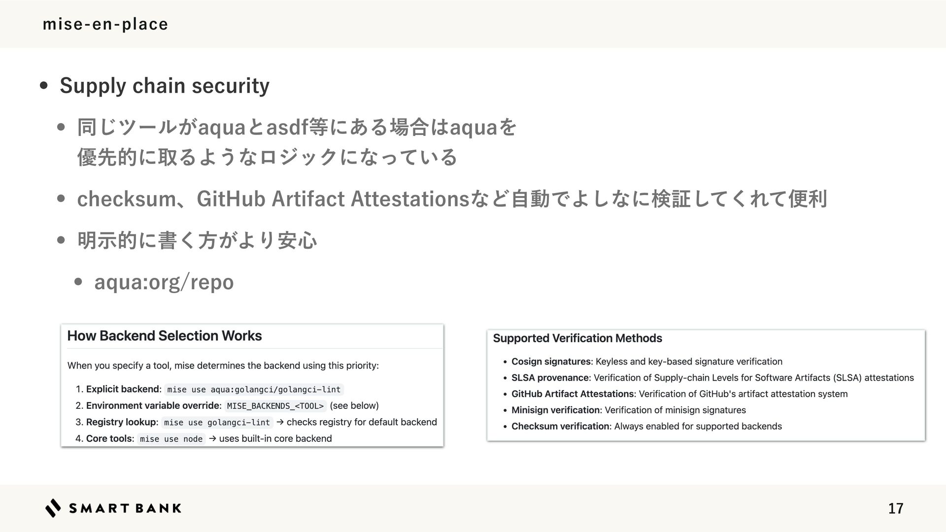 NJTFFOQMBDF w 4VQQMZDIBJOTFDVSJUZ w ಉ͡πʔϧ͕BRVBͱBTEGʹ͋Δ߹BRVBΛ ༏ઌతʹऔΔΑ͏ͳϩδοΫʹͳ͍ͬͯΔ w DIFDLTVNɺ(JU)VC"SUJGBDU"UUFTUBUJPOTͳͲࣗಈͰΑ͠ͳʹݕূͯ͘͠Εͯศར w