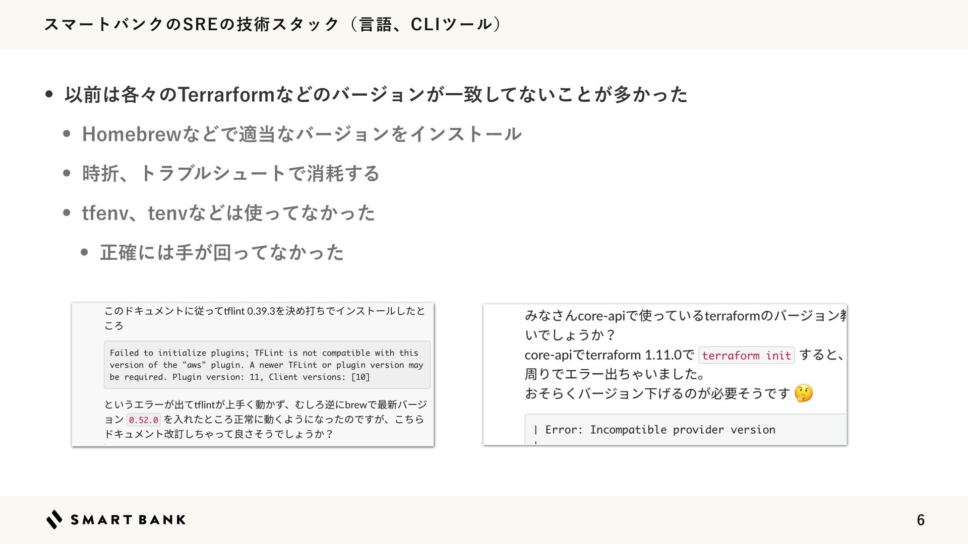 εϚʔτόϯΫͷ43&ͷٕज़ελοΫʢݴޠɺ$-*πʔϧʣ w Ҏલ֤ʑͷ5FSSBSGPSNͳͲͷόʔδϣϯ͕Ұகͯ͠ͳ͍͜ͱ͕ଟ͔ͬͨ w )PNFCSFXͳͲͰదͳόʔδϣϯΛΠϯετʔϧ w ࣌ંɺτϥϒϧγϡʔτͰফ͢Δ w UGFOWɺUFOWͳͲͬͯͳ͔ͬͨ