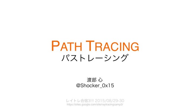 for (int i = 0; i < ImageWidth; ++i) { px = i + rnd01(), py = j + rnd01(); ray, We, dirPDF = sampleCameraRay(px, py); alpha *= We / dirPDF; hit, surfPt = intersect(ray); if (!hit) continue; if (surfPt.isEmitting()) contribution += alpha * surfPt.Le(-ray.dir); while (true) { ... // BSDFの重点的サンプリング fs, dir, dirPDF = surfPt.BSDF.sample(rnd01(), rnd01()); alpha *= fs * absDot(surfPt.n, dir) / dirPDF; ray = Ray(surfPt.p, dir); hit, surfPt = intersect(ray); if (!hit) break; ... // Russian Roulette if (rnd01() >= ProbRR) break; alpha /= ProbRR; } } } // 光源上の点を明示的にサンプリングして現在の点と接続 lightSurfPt, lightPDF = sampleLightPoint(rnd01(), rnd01()); if (unoccluded(surfPt, lightSurfPt)) { shadowDir = normalize(lightSurfPt.p – surfPt.p); cosShd = absDot(surfPt.n, shadowDir); cosLight = absDot(lightSurfPt.n, shadowDir); dist2 = sqDistance(surfPt.p, lightSurfPt.p); fs = surfPt.BSDF.eval(shadowDir, -ray.dir); G = cosShd * cosLight / dist2; // 単位をlightPDF[m^-2]に合わせる。 bsdfPDF = surfPt.BSDF.evalDirectionalPDF(shadowDir, -ray.dir) * cosLight / dist2; MISWeight = lightPDF / (bsdfPDF + lightPDF); contribution += alpha * MISWeight * fs * lightSurfPt.Le(-shadowDir) * G / lightPDF; } /FYU&WFOU&TUJNBUJPO .*4ΣΠτ