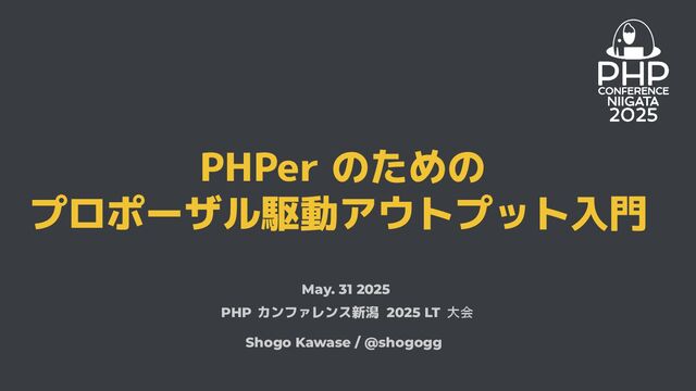 Shogo Kawase / @shogogg May. 31 2025 PHP カンファレンス新潟 2025