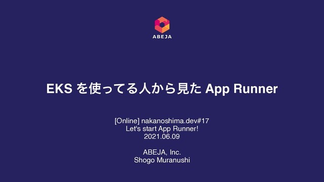 ABEJA, Inc . Shogo Muranushi EKS ΛͬͯΔਓ͔Βݟͨ App Runner
