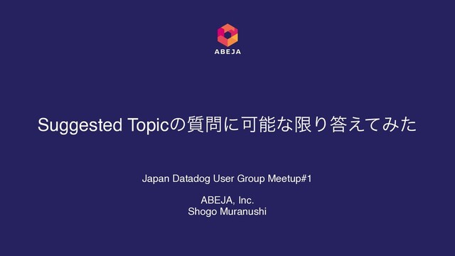 Japan Datadog User Group Meetup#1 ABEJA, Inc. Shogo Muranushi Suggested