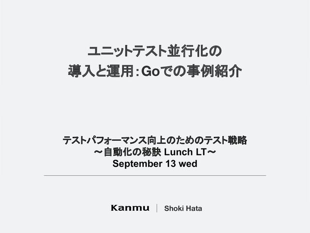 ユニットテスト並行化の 導入と運用:Goでの事例紹介 Shoki Hata テストパフォーマンス向上のためのテスト戦略 〜自動化の秘訣 Lunch LT〜 September 13