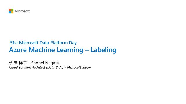 Azure Machine Learning 概要 & Data Labeling 紹介 - 51st Microsoft Data Platform Day