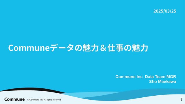 © Commune Inc. All rights reserved 1 Communeデータの魅⼒&仕事の魅⼒ Commune Inc.