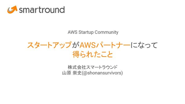 AWS Startup Community スタートアップがAWSパートナーになる理由 https://aws-startup-community.connpass.com/event/318044/