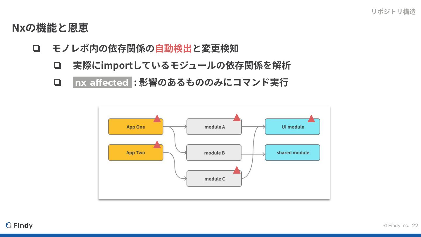 : 影響のあるもののみにコマンド実⾏ 21 Nxの機能と恩恵 リポジトリ構造