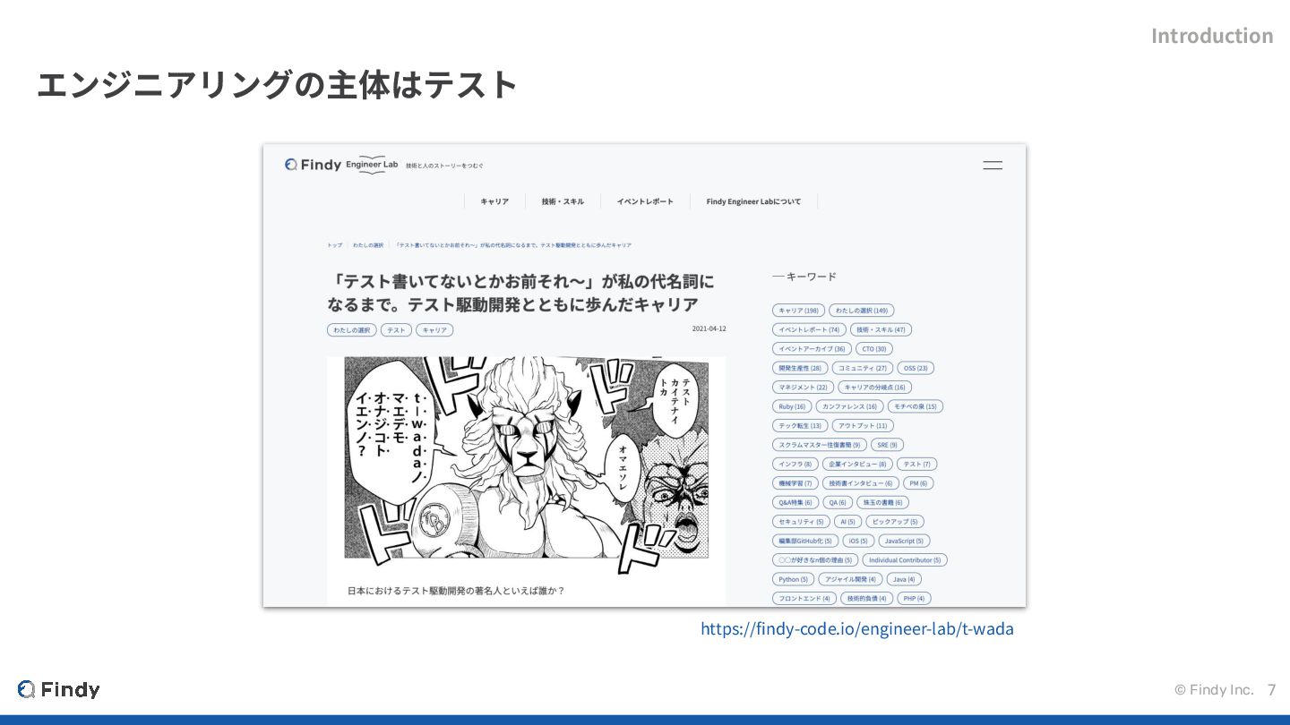 © Findy Inc. 6 Introduction テスト、書いてますか?