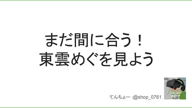 まだ間に合う! 東雲めぐを見よう てんちょー :@shop_0761