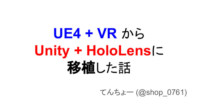 UE4 + VR から Unity + HoloLensに 移植した話 てんちょー (@shop_0761)