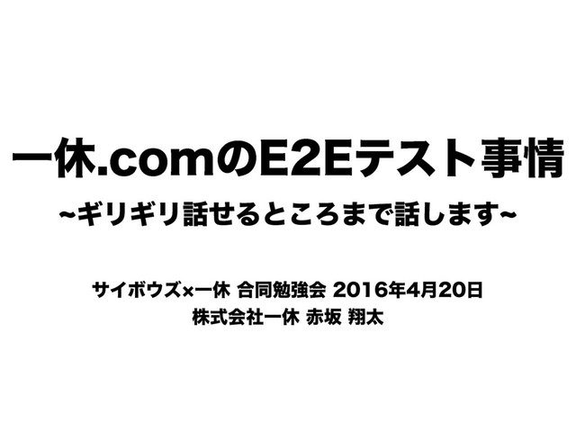 一休.com宿泊サイトのE2Eテスト事情をギッリギリまで話しました。このスライドを見た方は一休のエンジニアより一休のE2Eに詳しくなると自負しております。