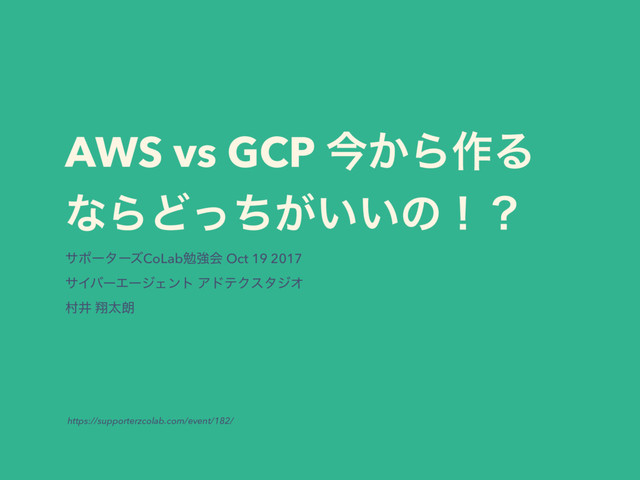 AWS vs GCP ࠓ͔Β࡞Δ ͳΒͲ͕͍͍ͬͪͷʂʁ αϙʔλʔζCoLabษڧձ Oct 19 2017 αΠόʔΤʔδΣϯτ