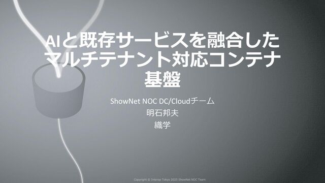 データセンターのサービス基盤は、従来の IaaS 仮想化にコンテナ技術を組み合わせたハイブリッド環境へと移行しつつあります。ShowNet ではこれまで Kubernetes (k8s) を活用しマルチテナント対応のコンテナ基盤を設計・運用してきました。今年の ShowNet では、 SRv6 を用い複数ネットワークを統合的に扱えるコンテナ基盤を構築し実サービスを提供しました。一方、 AI/ML ワークロードを支えるには 400/800G の帯域でも輻輳を抑制できる高度なネットワーク制御が不可欠です。今年は DC/Cloud の新たな取り組みとして AI/ML 基盤向け高速ネットワークとサービス基盤を支える新技術の双方を評価し他サービスとの連携まで実証しました。本セッションでは、 SRv6 で実現したマルチテナント対応コンテナ基盤の構成と AI/ML 向けネットワークの設計・検証結果を解説します。