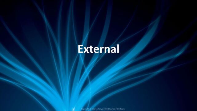 #N-1 Exhibitor #N-7 NCS57b1 C8711 Hall2-3 Pod#3N 9603-2-1 9603-2-2 9603-3-1 9603-3-2 5166 9603-2 (T) FTU9100-1 WL5n 9603-2 (T) WL5n Splitter FTU9100-2 FTU9100-3 5166 NE8000-M4 MX304 λ1 λ2 λ3 λ4 λ1 λ4 λ3 λ1 = 195.0THz (1537.40nm) C50 λ2 = 195.4THz (1534.25nm )C54 λ3 = 195.1THz (1536.61nm) C51 λ4 = 195.5THz (1533.47nm) C55 λ5 = 193.7THz (1547.72nm) C37 Input Power -6.0dBm ~ ±0dBm (暫定:-2dBm) Messe Fiber 400GBASE-LR4/FR4 400GBASE-ZR/ZR+ Transceiver 10GBASE-LR 400G XR Optics Transceiver 9603-1-1 9603-1-2 λ2 400G DWDM λ1, λ4, λ5 λ2, λ4, λ5 λ3, λ2, λ5 λ3, λ2, λ5 λ1, λ4, λ5 λ2, λ4, λ5 ONA800 100GBASE-ZR Transceiver λ5 λ5 伝送 DC/SVC Security External Backbone Exhibitor Hall2-3 FOADM FOADM WX WX FOADM FOADM 9603 9603 9603 横方向 縦方向 ShowNet APN WDM#2 伝送設計 ONA800 λ5 Input Power -8.0dBm ホール間ROADMリングに加え、XROptics、FlexEによる伝送の採用