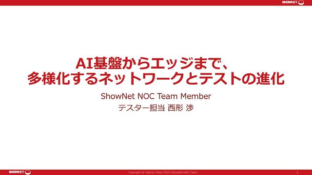 デバイスモードとポートモード Tester 29 Vendor B Vendor A Vendor A Vendor A Vendor A #! bin/python3 """ This is my script to test snappi with ixia-c, trex, and IxNetworks in ShowNet 2023!! """ import datetime import ipaddress import snappi import random import time def main(): p1 = Port("port1", **{ "location": "172.16.18.12;1;7", "mac": "00:00:01:00:00:01", "addr4": "192.168.7.2/24", "gw4": "192.168.7.1", "gw4_mac": "00:00:00:00:00:00", }) p2 = Port("port2", **{ "location": "172.16.18.12;1;8", "mac": "00:00:02:00:00:01", "addr4": "192.168.8.2/24", "gw4": "192.168.8.1", "gw4_mac": "00:00:00:00:00:00", }) api = snappi.api(location = "https://10.39.19.198:8443", verify = False) config = snappishow_test_unidi(api, p1, p2) if wait_for(lambda: verify_port_statistics(api, config), timeout = 60): print("SUCCESS") else: print("FAILED") def verify_port_statistics(api, config): # Create a port statistics request and filter based on port names statistics = api.metrics_request() statistics.port.port_names = [p.name for p in config.ports] # Create a filter to include only sent and received packet statistics statistics.port.column_names = [statistics.port.FRAMES_TX, statistics.port.FRAMES_RX] # Collect port statistics results = api.get_metrics(statistics) ...
