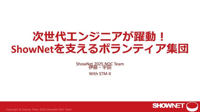 2025年6月に幕張メッセで実施されたInterop Tokyo ShowNetブース内ステージでのNOCチームメンバーによる講演資料