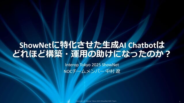 2025年6月に幕張メッセで実施されたInterop Tokyo ShowNetブース内ステージでのNOCチームメンバーによる講演資料