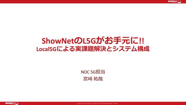 ShowNetのL5Gがお手元に!! Local5Gによる実課題解決とシステム構成 NOC 5G担当 宮﨑 祐哉
