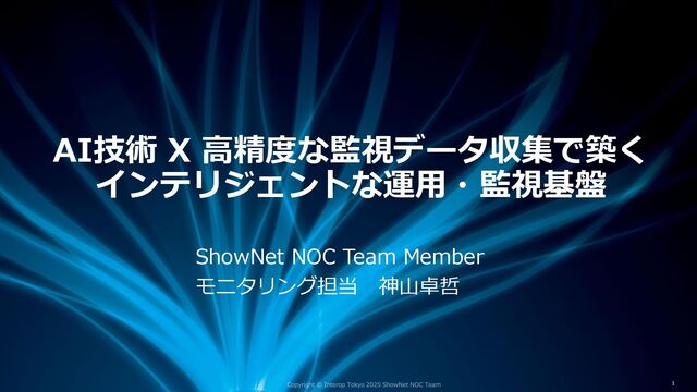 本セッションでは、ShowNet 2025の監視システムのコンセプトと構築過程、そして監視運用で可視化した結果をご紹介します。
