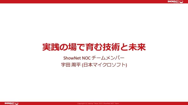 ShowNetでは、一般公募やコントリビューター企業様から集まったボランティアメンバーであるSTM(ShowNet Team Member)が構築や運用を支えています。本セッションでは、大規模ネットワークの構築に興味のある若手の方や、若手の育成に携わっている方へ向けて、STMプログラムの概要や今年の活動内容を中心にご紹介いたします。