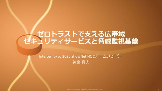 今年は管理面においてはVXLAN-GBPによるマイクロセグメンテーションや、ポリシに従ってアクセス制御されたセキュアなリモートアクセスサービスなど、ゼロトラストを意識した設計を取り入れました。サービス面においてはEVPN/VXLANで構成された出展社ネットワークにインラインで接続したファイアウォールによりセキュリティサービスを提供しました。さらに、パケットブローカーやASMを活用したShowNet全体の脅威監視の取り組みも実施しました。本セッションでは、今年のセキュリティに関するチャレンジや取り組みについてご紹介します。