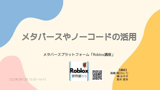 メタバース文化祭(アーティストとのメタバース美術館・企業とのメタバース広告連携など)/ 演劇でのRoblox活用 / 教育事例〜Robloxを活用した3Dプログラミング基礎講座事例 for 小中学生〜 / メタバース初詣(複数のオフライン・オンラインコミュニティ合同)/ バーチャル街づくり連合(リアル・メタバースを含めた民主的な世界創造実験)/ etc
