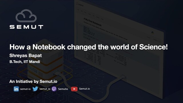 Notebooks are disrupting science, finance and every other sector. Learn more about Jupyter Notebooks on this tech talk with Shreyas Bapat, B.Tech. IIT Mandi, who is spearheading efficiency initiatives at Semut.io.