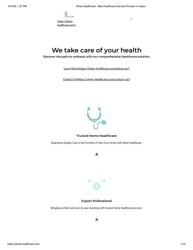 the path to wellness with our comprehensive healthcare solution. Learn More(https://shree-healthcare.com/about-us/) Contact Us(https://shree-healthcare.com/contact-us/) Trusted Home Healthcare Experience Quality Care in the Comfort of Your Own Home with Shree Healthcare.  Expert Professional Bringing comfort and care to your doorstep with trusted home healthcare services.  10/7/24, 1:27 PM Shree Healthcare - Best Healthcare Service Provider in Jaipur https://shree-healthcare.com 1/10
