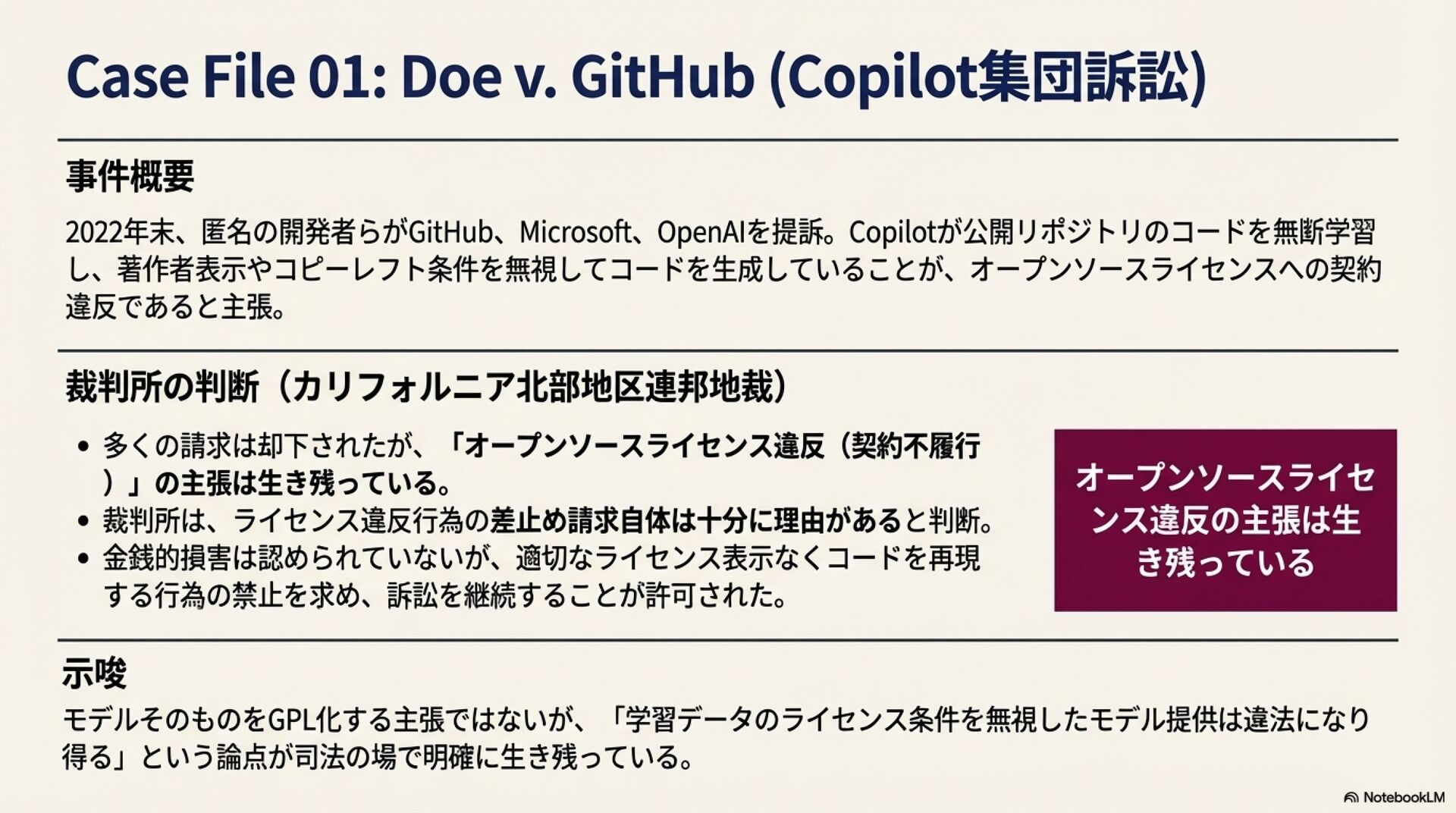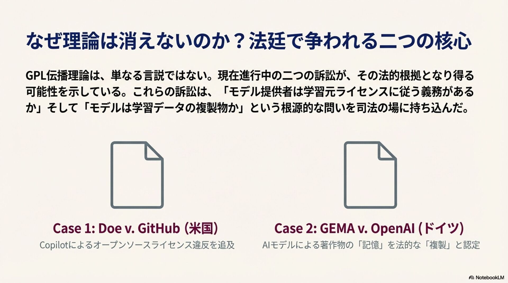 AIへのGPL伝播理論:法廷闘争が示す「未解決」の現在地