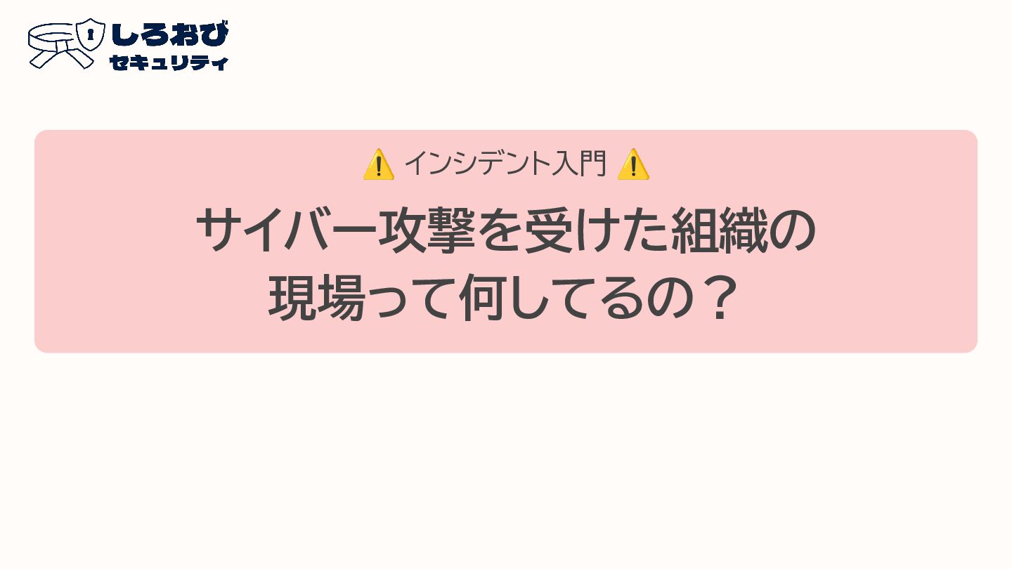 ⚠ インシデント入門 ⚠ サイバー攻撃を受けた組織の 現場って何してるの?