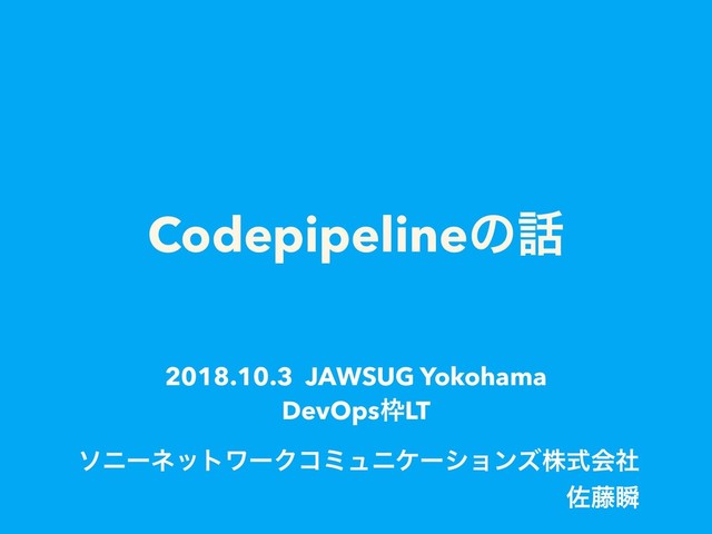 Codepipelineͷ ιχʔωοτϫʔΫίϛϡχέʔγϣϯζגࣜձࣾ ࠤ౻ॠ 2018.10.3 JAWSUG Yokohama DevOpsLT