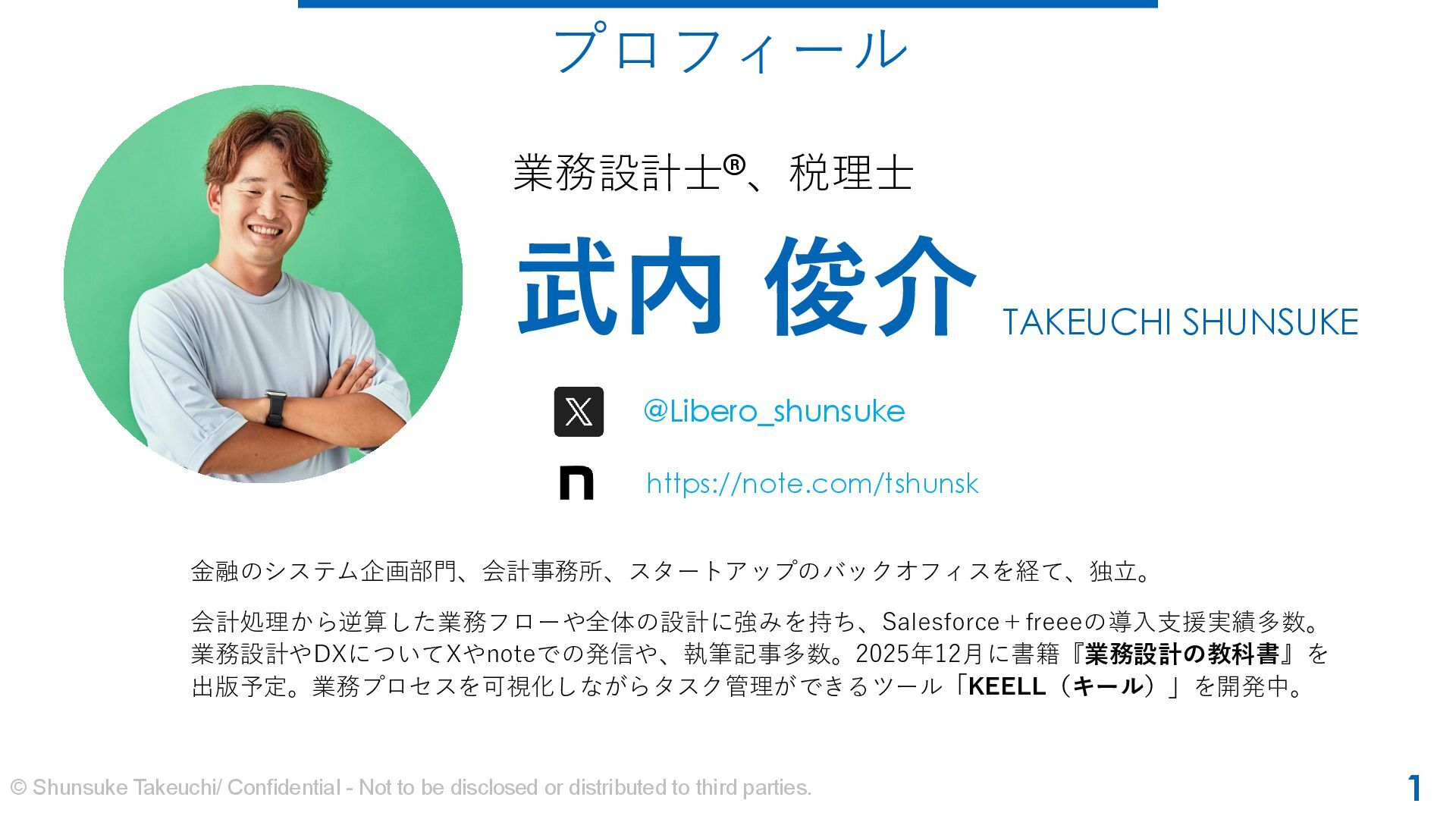 このプレゼンテーションでは、freee会計の特徴や構造を踏まえて、かつ、AIやDXによって重要性がさらに増している「業務設計」の基礎についてお伝えするものです。
