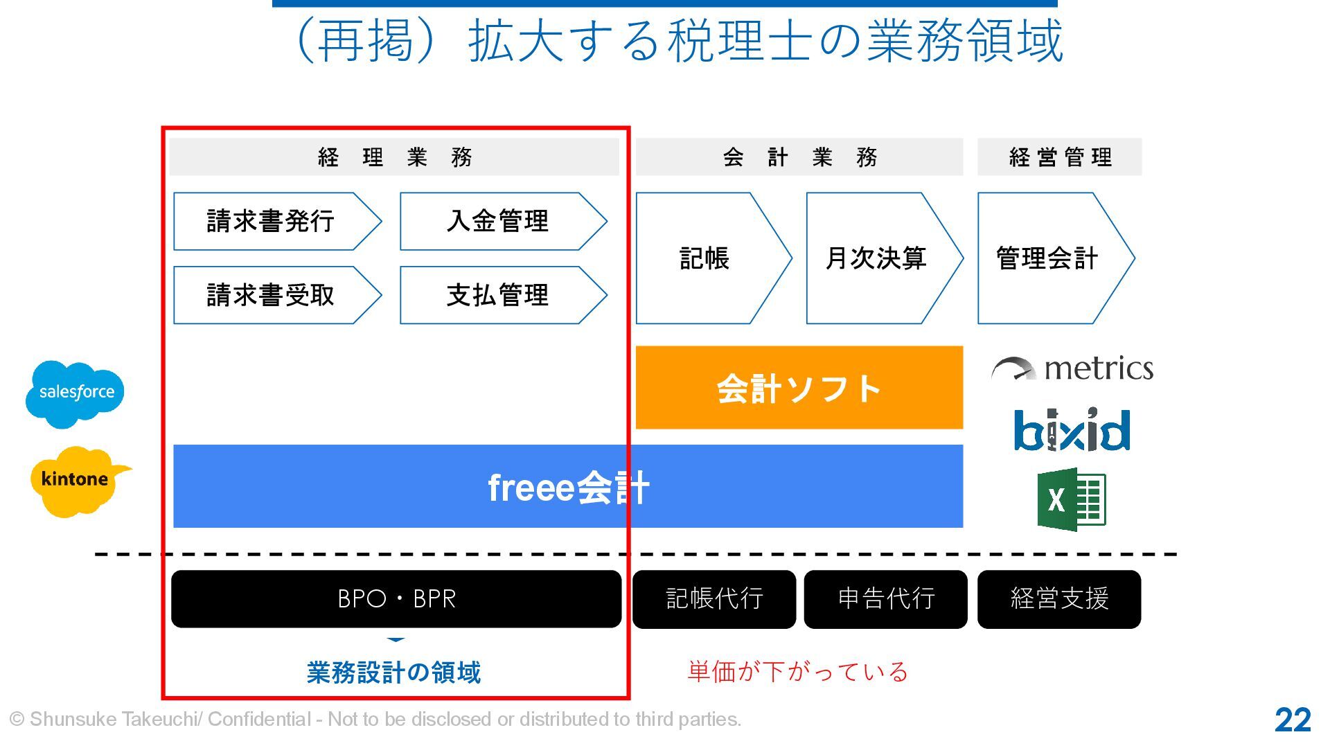 freee会計の最大の特徴は経理から会計を一気通貫で処理できること。そのために「取引」「口座」「明細」などの独自の概念や構造作り出し、記帳処理を前提として経理・会計のやり方そのものを大きく変えました。このアプローチは、「いかに記帳の入力スピードを上げるか」という会計ソフトのやり方とは大きくことなり、freee会計を使用する側に大きく業務のやり方をアップデートすることを要求するというもので、いまでも賛否両論がありますが、業務設計ができればfreee会計を使いこなし、かつ、経理代行を含めてBPO・BPRにも業務を拡大できる大きなチャンスだとも言えます。