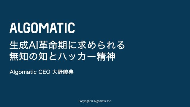 ■ Algomatic HP:https://algomatic.jp/ 採用情報:https://jobs.algomatic.jp/